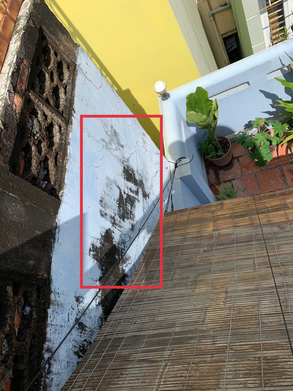 Vệ sinh sạch sẽ, cạo sạch rêu mốc, bụi bẩn. Dùng rulo lăn hai lớp sơn chống thấm hệ trộn xi măng, cách 1 ngày sau lăn hai lớp sơn chống thấm đàn hồi chịu được tia cực tím, tránh cho việc tường sau này bị rạn nứt.