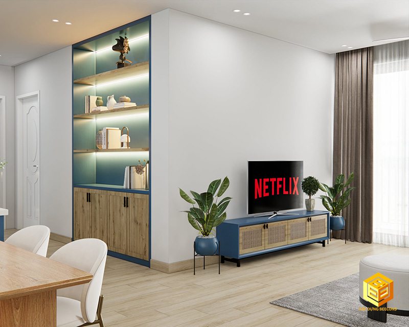 Căn hộ gồm có 2 phòng ngủ với đầy đủ tiện nghi, không gian rộng và thoáng. Tất cả các phòng đều có góc view đẹp là lợi thế của căn hộ này. Với yêu cầu của gia chủ mong muốn có một không gian mang màu sắc thiên nhiên nhưng phải hài hòa về tổng thể màu sắc trong căn hộ. Do đó, Beecons đã gửi đến cho vợ chồng anh Trí, chị Hạnh mẫu thiết kế nội thất căn hộ 2 phòng ngủ với cách bày trí ngăn nắp, trẻ trung, phù hợp với gia đình chị.