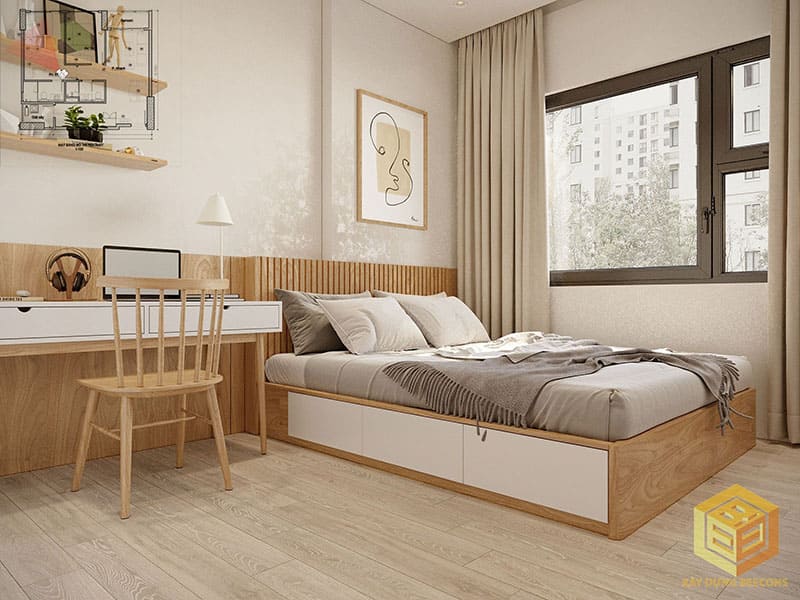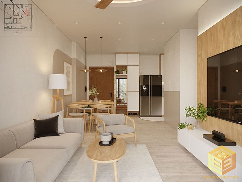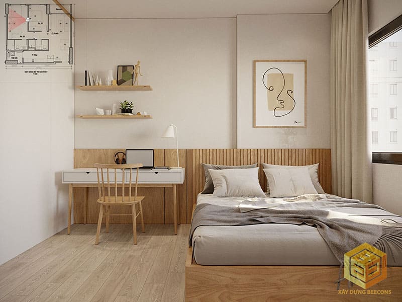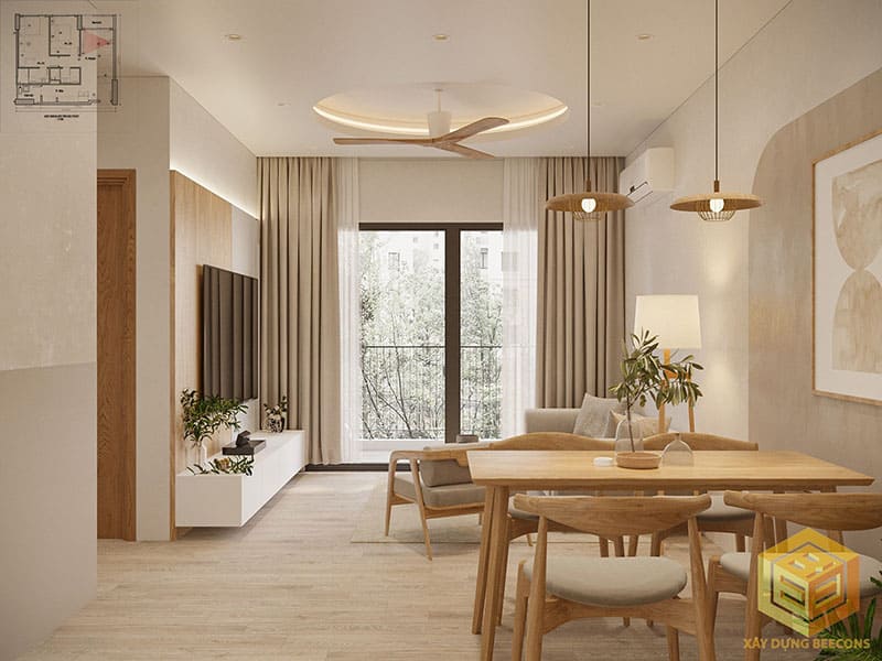 Một công trình mang phong cách Japandi nhẹ nhàng, khơi gợi nhiều cảm xúc được kiến trúc sư Beecons thực hiện khi đất trời sang thu. Vì vậy, không gian mang đến một vẻ đẹp dịu dàng, rất thân thương. Căn hộ phong cách Japandi của vợ chồng Chị Thanh mang sắc vàng nhẹ mộc mạc của nội thất kết hợp cùng sắc trắng sáng từ sơn tường.