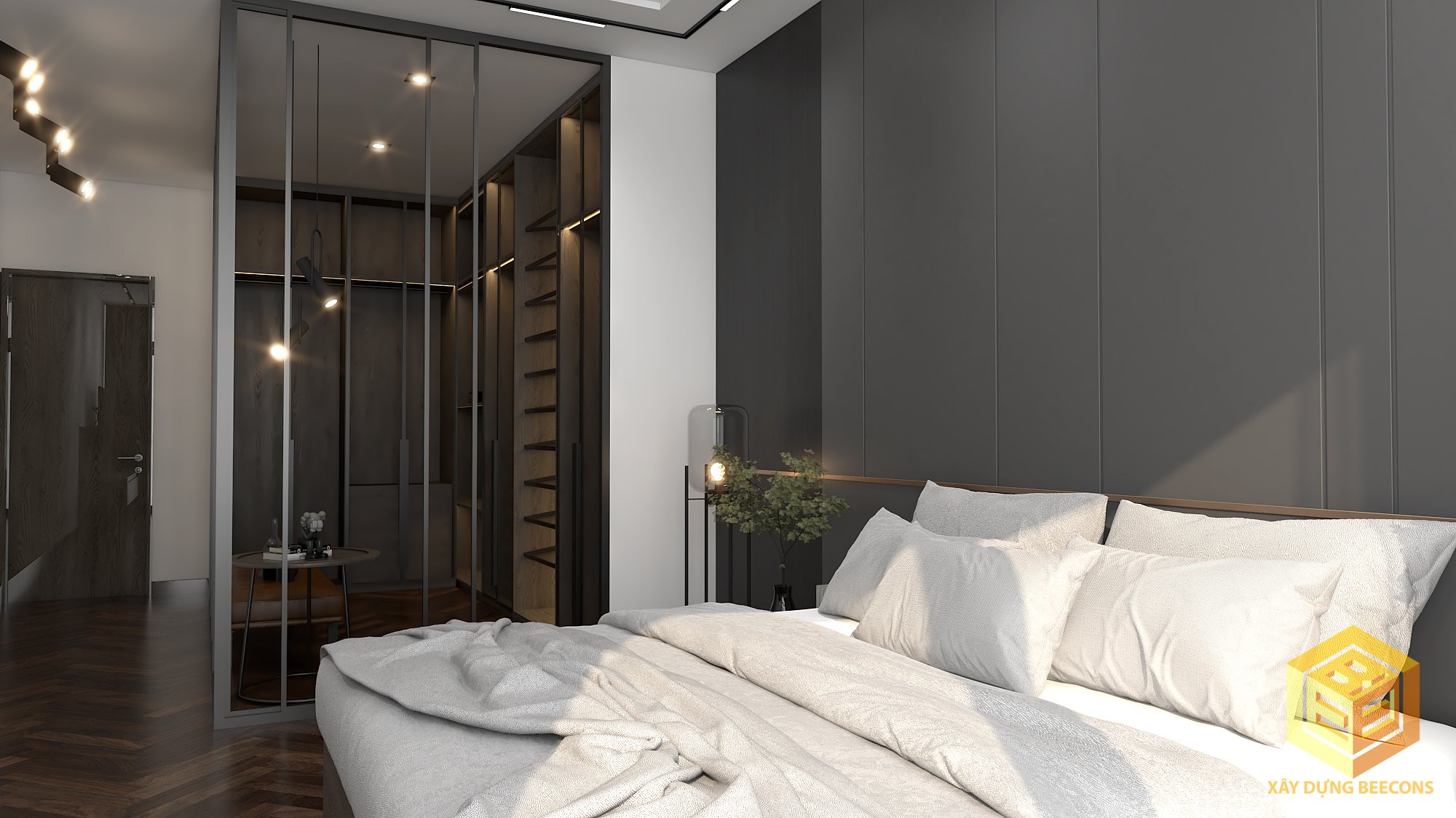 + Tầng 1,2: phòng ngủ + phòng thay đồ, WC