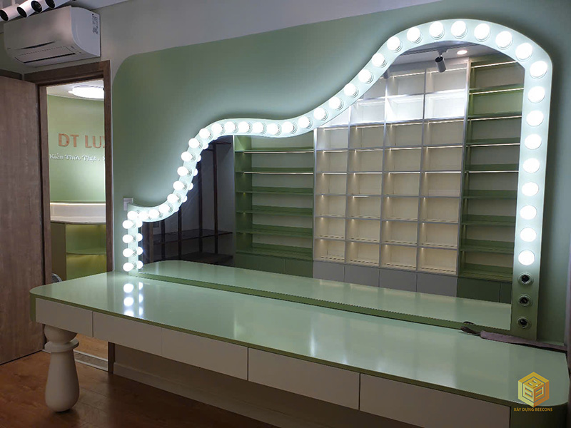 - Khu vực livestream: Bàn trang điểm với gương đèn LED, giúp tối ưu ánh sáng và tạo điểm nhấn sang trọng.