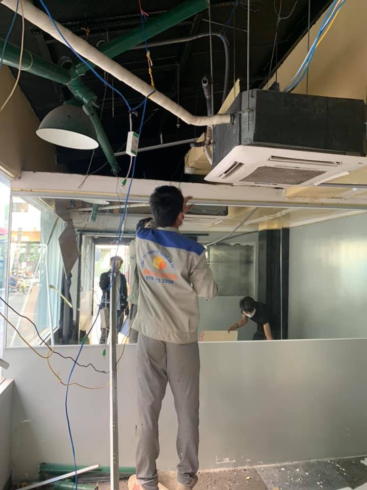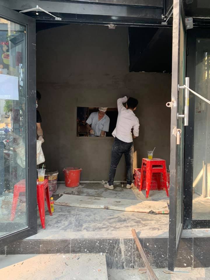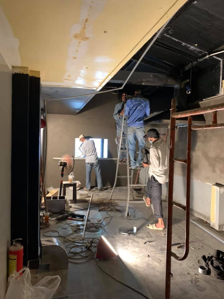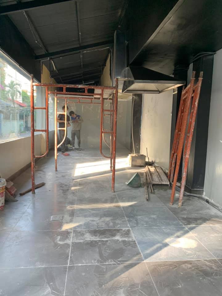 Hạng mục: Tháo dỡ hiện trạng, xây tô tường ngăn, bã sơn, lắp đặt máy hút khói, bảng hiệu.
